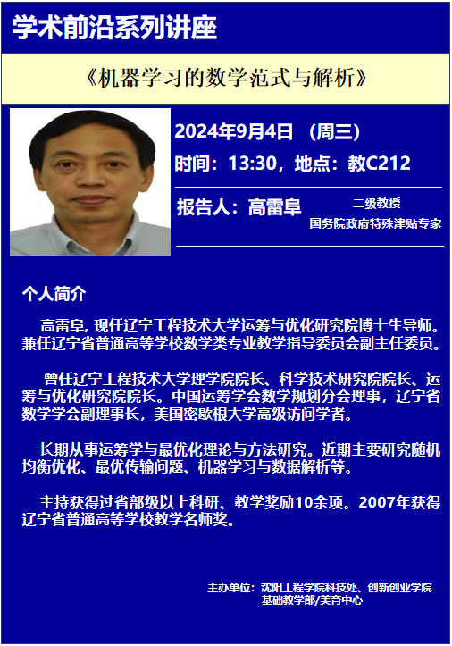 学术前沿系列讲座, <<机器学习的数学范式与解析>>