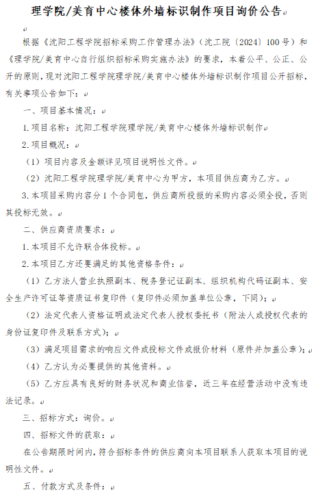 太阳成集团tyc234cc楼体外墙标识制作项目询价公告