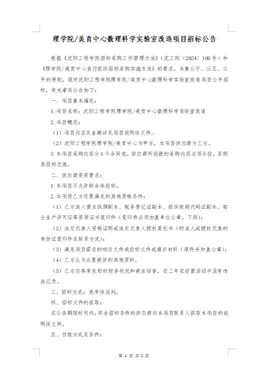 太阳成集团tyc234cc数理科学实验室改造项目招标公告