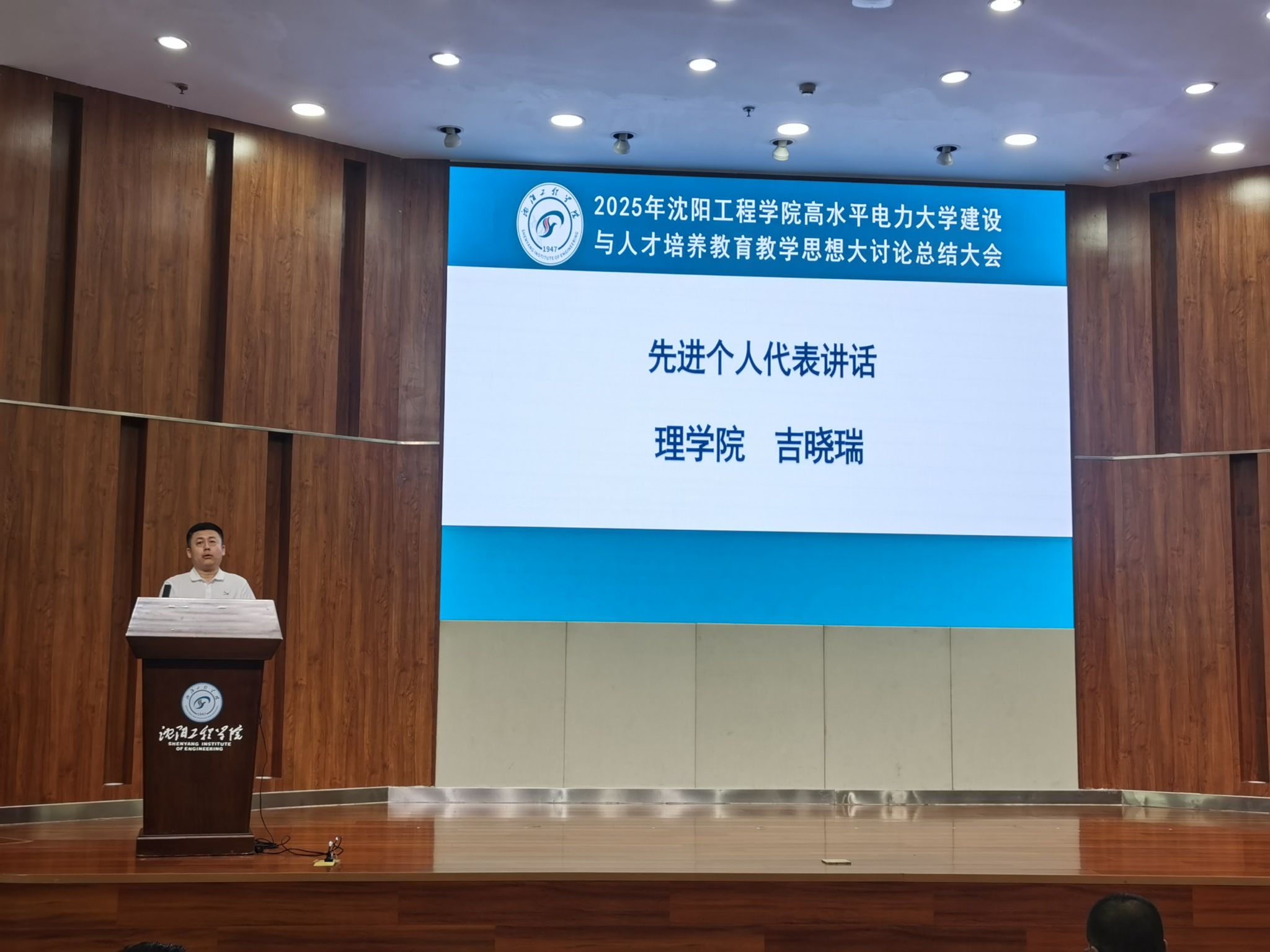 6月25日,学校召开“2025年太阳成tyc234cc高水平电力大学建设与人才培养教育教学思想大讨论总结大会”,太阳成集团tyc234cc副院长吉晓瑞作为先进个人代表在大会上作交流发言。