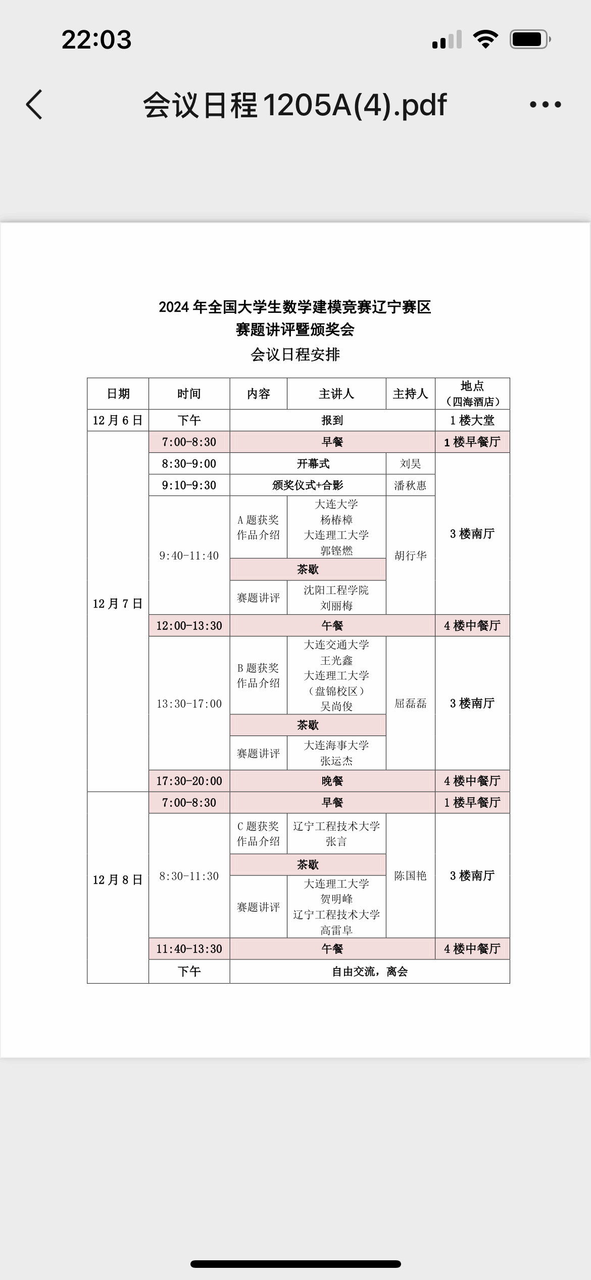 2024年12月7日,“2024年全国大学生数学建模辽宁赛区赛题讲评会暨颁奖会”在鞍山举行,本次大会由全国大学生数学建模辽宁赛区组委会主办、辽宁科技大学协办。会上,太阳成tyc234cc太阳成集团tyc234cc系统工程研究室主任刘丽梅对A题进行了赛题讲评,这是我校教师首次在此类会议上作专家讲评,为进一步做好数学建模比赛奠定了重要而坚实的基础。