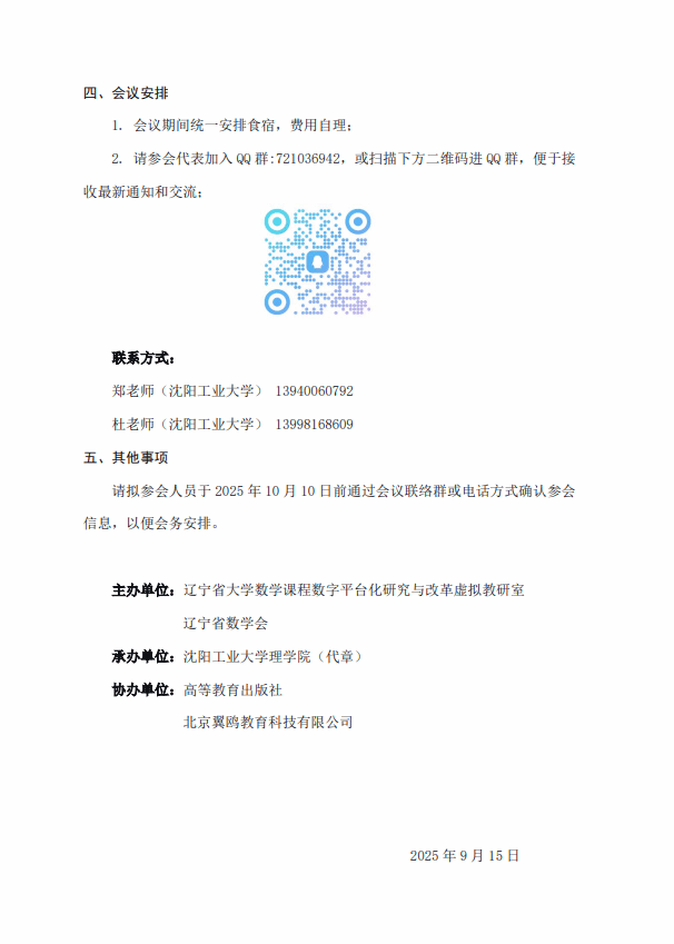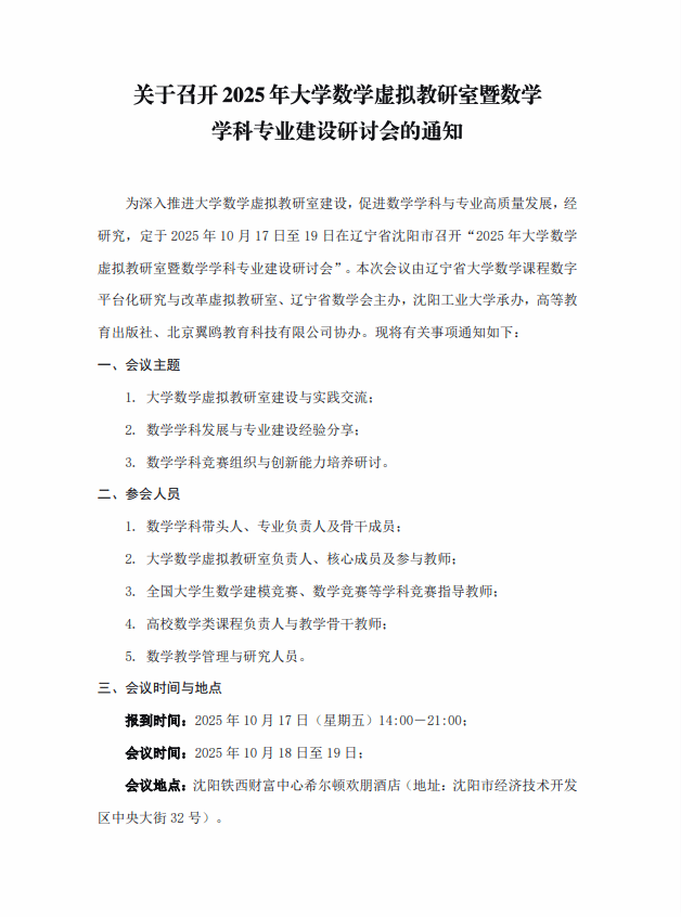 10月18日,太阳成集团tyc234cc院长史书慧一行7人应邀赴沈阳工业大学参加“2025年大学数学虚拟教研室暨数学学科专业建设研讨会”。