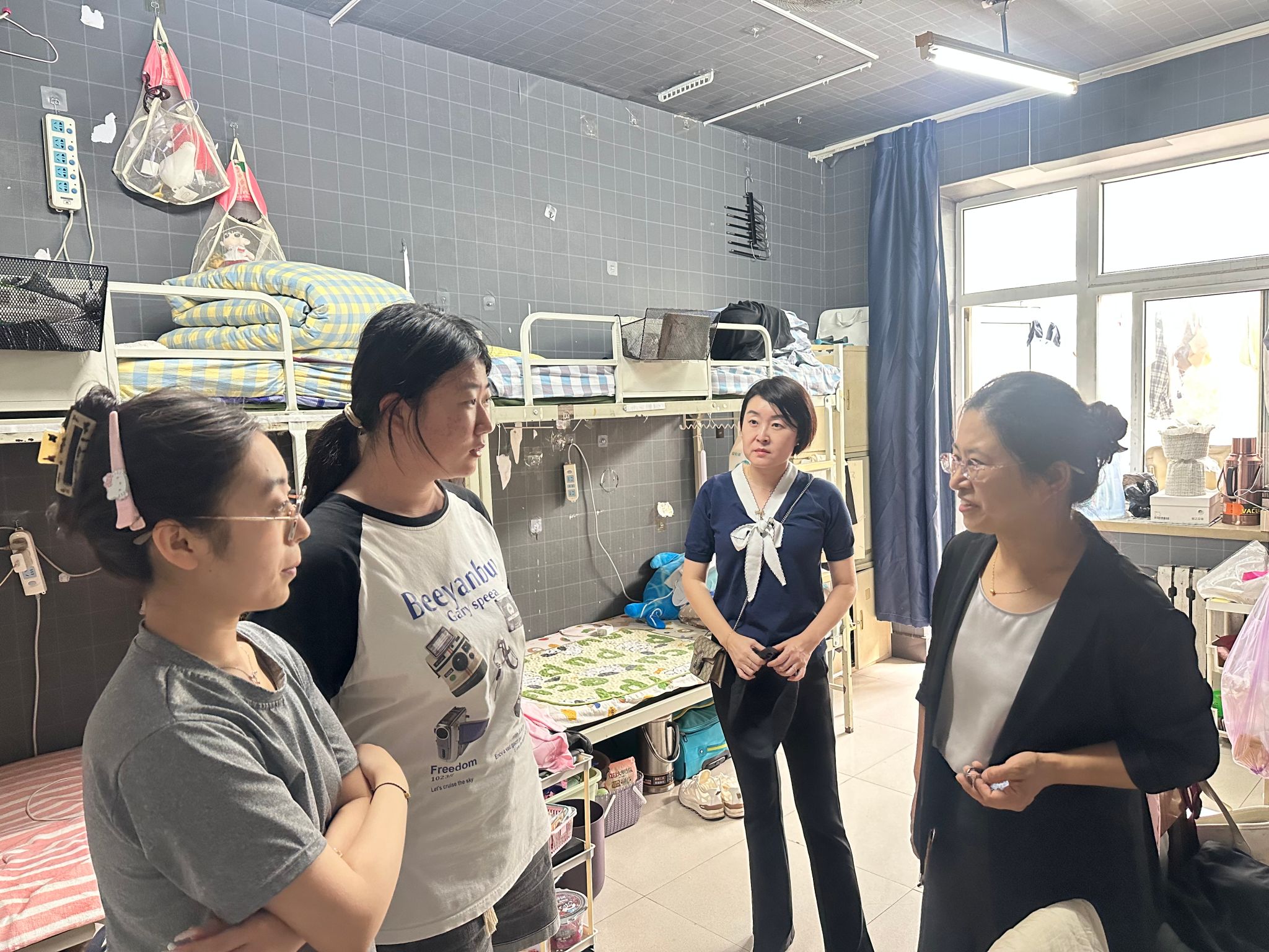 走访过程中,学院领导与同学们进行了亲切交流,细致询问大家在新调换宿舍后的适应情况,全方位关切学生的实际需求,并叮嘱同学们要注重寝室安全与环境卫生,尽快调整状态,以饱满的精神面貌迎接新学期的学习任务,