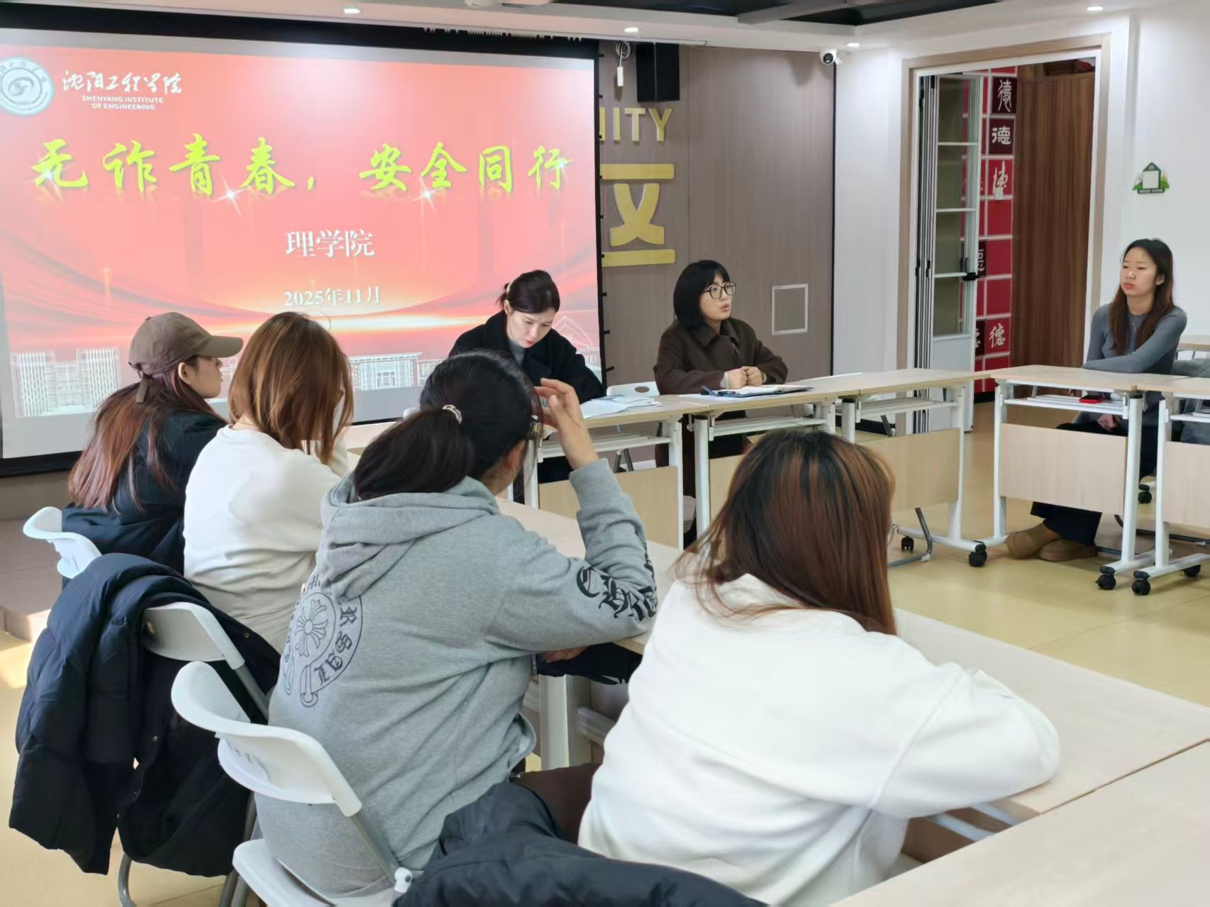 为切实增强学生防范电信网络诈骗的意识和能力,维护校园安全稳定,11月19日下午,我院在“一站式”学生明德社区组织召开“无诈青春 安全同行”主题安全教育会。学院党总支副书记王松媛与辅导员刘焕焕深入学生群体,与各年级学生代表面对面开展安全知识宣讲与互动交流。