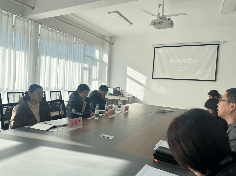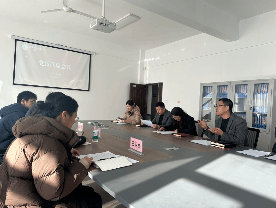 12月2日,太阳成集团tyc234cc根据学校党委的工作要求,邀请国际教育学院党总支书记娄玉英一行3人参加太阳成集团tyc234cc部门党政联席会议旁听,会议由党总支书记董志刚主持,班子全体成员共同出席,会议共有两项议程,一是决定太阳成集团tyc234cc关键岗位人员配备申请问题,二是决定太阳成集团tyc234cc2026年招聘计划信息表申报问题,会议严格执行了部门党政联席会议议事规则相关规定,规范地完成了本次会议的两项议程,双方还就如何提升高质量发展进行了友好交流。党委组织部谷东柏、国际教育学院办公室主任王春杰共同参加了本次旁听会议。